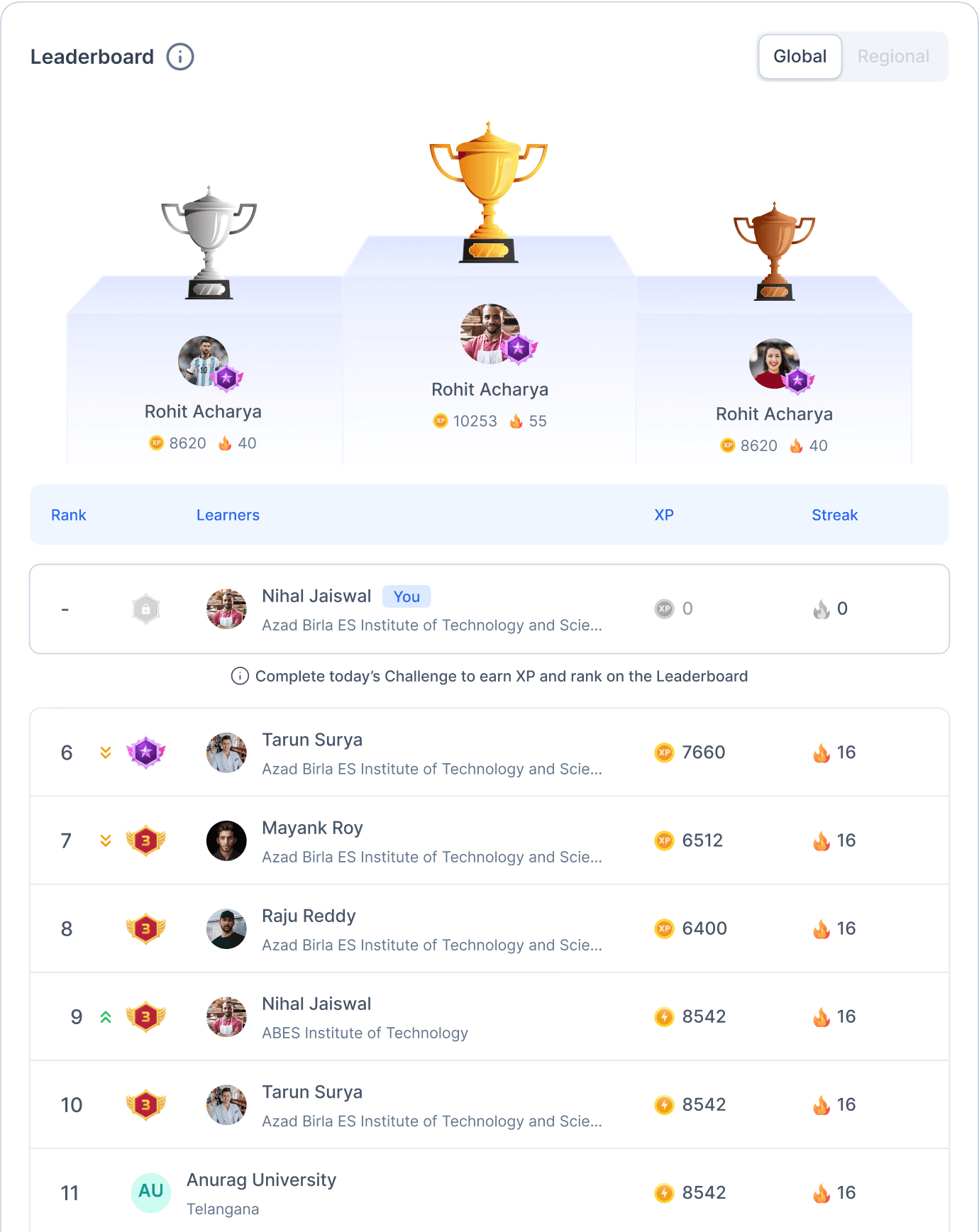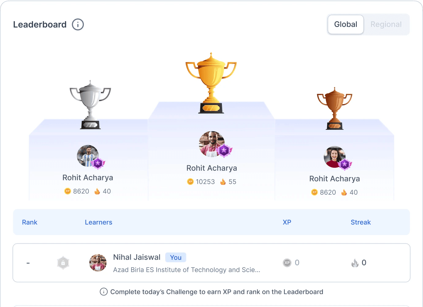Leaderboards: A community leaderboard introduced light competition and healthy visibility. Seeing peers progress builds intrinsic momentum—and a little FOMO doesn’t hurt.